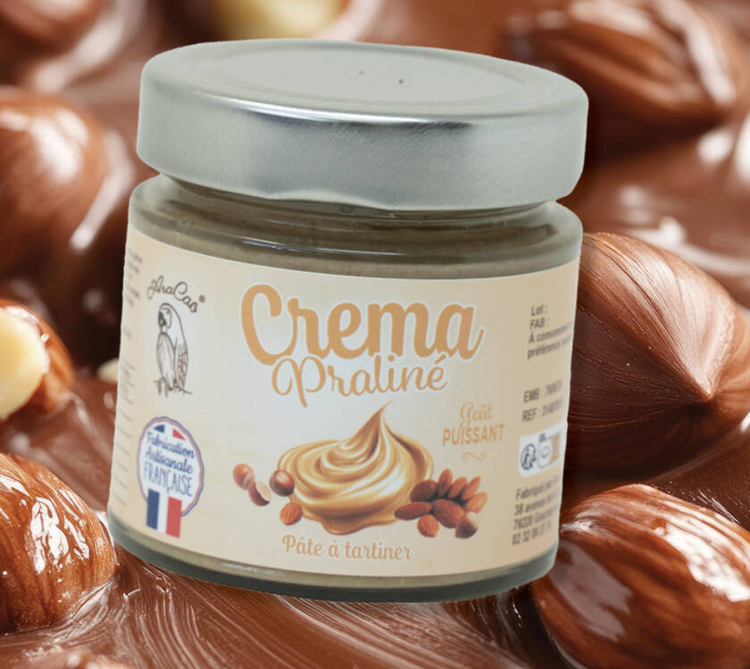 Noisettes et amandes torréfiées à cœur, cuisson précise, broyage fin : une crème praliné au reflet gourmand. Profil aromatique : caramel doré, noisette toastée, subtile touche beurrée ; douceur maîtrisée. À déposer sur brioche tiède ou garnir un Paris-Brest. ARACAO : sélection rigoureuse, praliné d’exception au plaisir instantané.