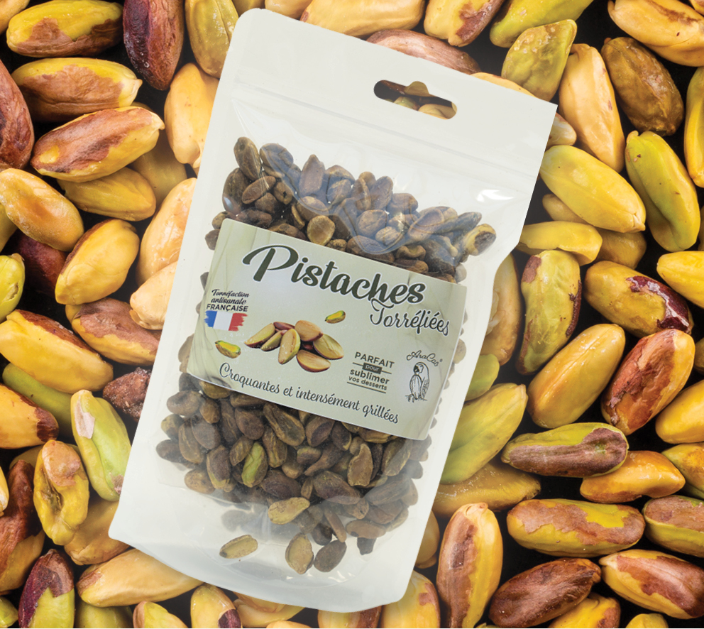 Un vert naturel et une pistache expressive : la cuisson précise réveille des notes toastées et une pointe végétale élégante. Leur mâche précise et leur parfum net signent une finition premium, aussi à l’aise en sucré qu’en salé. Sélection rigoureuse des fruits, torréfaction maison — la signature ARACAO.